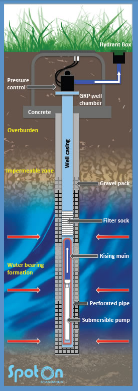Borehole Drilling for Garden Wells Your own garden bore hole beats the hose pipe ban! We work with a specialist water borehole drilling company who can access the water under the ground in your garden by way of drilling a deep narrow well, only approximately 113mm o/d wide to a sufficient depth to supply water (up to 8m) and installing a submersible pump. This can have a discreet appearance in your garden which can be covered with an attractive pump. The water, of which you can draw up to 20,000 litres / 4,400 gallons daily without charge, can be used for your garden and connected to an irrigation system beating the hosepipe ban and ensuring that your investment in your garden is not lost through insufficient watering. Click images for enlargement |